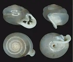 The shell has 6–6½ whorls. The width of the shell is 6.8–8.1 mm. The height of the shell is 4.6–5.6 mm.[1]