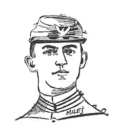 After receiving his commission, Miles was assigned to the 14th Infantry Regiment at Vancouver Barracks, Washington.[3] He was promoted to first lieutenant in April 1898, and in May 1898 was mobilized for Spanish–American War in the Philippines.[3] Miles took part in combat in and around Manila as commander of the 14th Infantry's Company M, including the August 1898 Battle of Manila.[3] He continued to serve in the area around Manila, and took part in 1899 Philippine–American War engagements against Filipino insurgents.[3]
