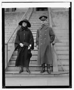 In July 1920, Miles was promoted to permanent colonel, and in August he began attendance at the United States Army War College.[8] He graduated in July 1921, after which he joined the faculty at the Fort Leavenworth General Service Schools.[8] In 1921, he married Mary Latta Stott, the daughter of Colonel William Wells Stott.[5] They had no children and were married until her death in 1949.[5] From July 1923 to July 1925, he served on the staff of the Militia Bureau.[8] He was then assigned to Fort Sheridan, Illinois, where he assumed command of the 2nd Infantry Regiment.[8]