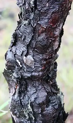 Persoonia longifolia resprouts from both epicormic buds and from the lignotuber after a fire, often several months later.[6]