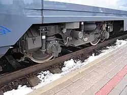 The structural strength of the 620M meets the PN-EN 12663 (category PII) standard. The vehicles use Pesa's own 8AS type running bogies and 3MSb powered bogies.[3] The suspension system features two levels of springing, comprising coil springs and air cushions.[2][3] The bogies can accommodate wheelsets for both 1,520 mm and 1,435 mm track gauges, allowing the 620M to travel independently across Polish territory.[9] The railcars can operate in multiple unit configurations (up to three vehicles).[3]