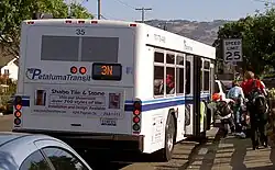 Petaluma Transit is the public bus service in the city of Petaluma, California. It operates six local routes and three school routes.[1] Petaluma Paratransit provides ADA-mandated paratransit for eligible persons within Petaluma city limits.[2]