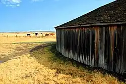 The Pete French Round Barn, located near Burns, Oregon, United States, is a round barn listed on the National Register of Historic Places. The late 19th century barn was owned and constructed by cattle rancher Peter French; French trained horses there during the winter. The barn was listed on the National Register on September 10, 1971.