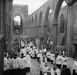 After the death of Lord Mayor of Cork and hunger-striker Terence MacSwiney (pron. MacSweeney) in Brixton Prison in October 1920, Amigo granted his family's request for use of the cathedral, despite the government urging otherwise. The bishop said that the Lord Mayor was a Catholic and entitled to the services of his church. Throughout MacSwiney's hunger strike, Amigo had written to politicians at Westminster to petition for his release. MacSwiney's body lay in state in Southwark Cathedral while 30,000 mourners passed by.[2] After the cathedral was severely damaged by an incendiary bomb during World War II, the Irish helped defray the cost of rebuilding. A plaque in St. Patrick's Chapel reads: