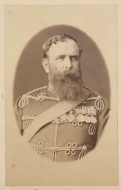 Lumsden served as Chief of Staff to the commander-in-chief, General Sir F. P. Haines, during the Second Anglo-Afghan War, for which he received the Order of the Bath. In 1884, Lumsden returned to the North-West frontier, when he was selected as British representative on the Anglo-Russian Commission for the demarcation of the north-west boundary of Afghanistan.[9][10] While leading the Commission, he felt he had been given insufficiently clear instructions by the British government, which proved very dangerous as the situation in Afghanistan deteriorated to the brink of war with Russia.[11] He resigned and returned to England in 1885 after the Panjdeh Incident.[12] He left London to represent the British at negotiations with Russia in selecting the Afghan Frontier Commission to determine the Afghan boundary.[13]
