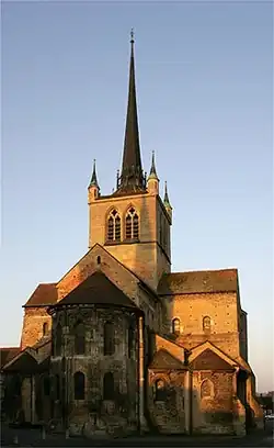 Archaeological excavations have led to new insights into the first church, which was built in the 10th century. In 960 it was expanded following the model of the Church of Cluny and the entrance hall was extended. A second building phase began in the middle of the 11th century, which brought the church to approximately its current appearance. A new nave was added around 1070-80.[3]