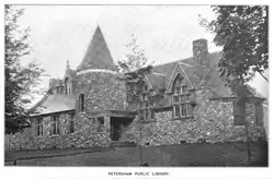 The historic district is basically linear, extending along Main Street between New Salem Road in the south and North Street in the north. Most of its 45 buildings were built before 1850; only a few are from the 20th century, and two of those (the town hall and the Unitarian Church, are from the outside reproductions of 19th-century buildings. Most of the buildings are wood-frame structures one or two stories in height; there is one brick building, built in 1848 as a schoolhouse. Two late additions to the district were designed by architect Edmund Wilson of Stone, Carpenter & Willson: the stone Petersham Memorial Library was built in 1889-91 as a memorial to the town's Civil War soldiers, and the Shingle style Hotel Nichewaug was built in 1899 as accommodations for summer visitors. Most of the other buildings in the district are Greek Revival. In addition to the common, other open space in the district includes the North Common Meadow, now a conservation property of The Trustees of Reservations.[2]