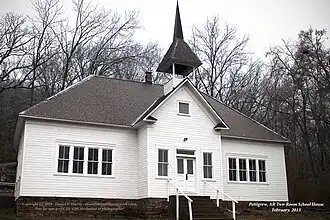 The former Pettigrew School, now the Pettigrew Community Building is a historic school building in the small community of Pettigrew, Arkansas. It is located off County Road 3205, just across the White River from Arkansas Highway 16. It is a single-story wood-frame structure, with a metal hip roof and weatherboard siding. An entry section projects from the center of front facade, topped by a gable roof and small belfry. The building is thought to have been built between 1908 and 1915, and was used as a school until 1963, when the area was consolidated into a larger school district. It has served as a community hall since then.[2]