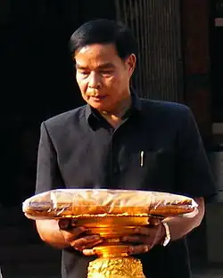 Phan (Thai: พาน, pronounced [pʰāːn]) is an artistically decorated tray with pedestal. It is common in Thailand, Cambodia, and Laos.