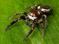 Phanias is a genus of jumping spiders that was first described by Frederick Octavius Pickard-Cambridge in 1901. They are similar to members of Marpissa, but have three pairs of spines beneath the first tibia.[2]