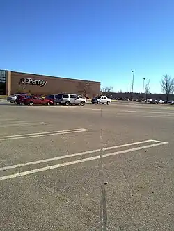 However, the site lines had been drawn up incorrectly, placing one corner of the JCPenney building in Massachusetts. Consequently, the corner of JCPenney was cut off and re-bricked into its current pentagonal shape.[7]