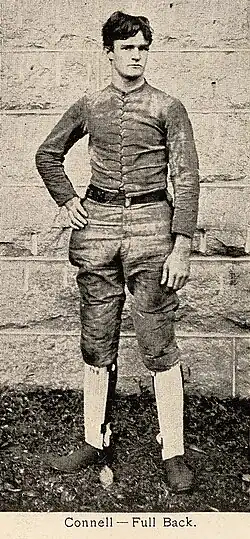 He was a running back for the Vanderbilt Commodores football team of Vanderbilt University.[2] Considered one of the sport's early greats,[3][4] he was picked for an all-time Vanderbilt team in 1912.[5] Connell was captain of the 1895 and 1896 teams.