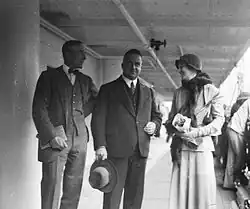 Sir Philip and Lady Game are farewelled by Premier Stevens on board RMS Niagara, upon their departure on 15 January 1935.