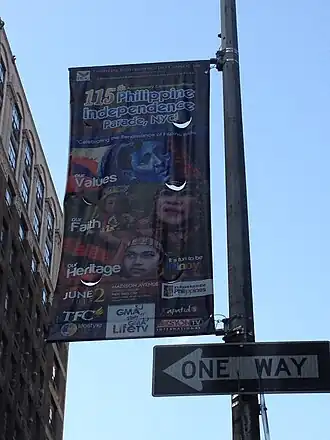 ![]() Philippine Independence Day Parade 2013 banner, on Madison Avenue in New York City | |