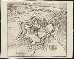 Historically, possession of the town was disputed between Germany and France. Formerly, there was a fortress located at the town, whose location was mentioned by Carl von Clausewitz. In Book VI of On War, he suggested that "If a fortress cannot be located directly on a river, it is better not to place it in the immediate vicinity, but some fifty to sixty miles away; otherwise the river will cut through and interfere with its sphere of influence with respect to all the points mentioned above." He then mentions in a footnote "Philippsburg was a perfect example of how not to site a fortress. Its location was that of an idiot standing with his nose against the wall.".[4] The fortress was besieged in 1644, 1676, 1688, and 1734, and during the War of the Second Coalition in 1799. Following the Peace of Lunéville, the fortress was demolished.