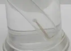 Phoronis australis secretes a chitinous tube into which it can retreat when disturbed. The tube is attached to the much larger tube of a tube-dwelling anemone which lives in shallow sheltered water immersed in soft sediment. Many horseshoe worms may be associated with a single ceriantharian anemone.[4] The lophophore of the horseshoe worm is extended to catch the planktonic particles on which it feeds. It benefits from the protection provided by the canopy of anemone tentacles and is alerted to danger by the reactions of the anemone in withdrawing into its tube when disturbed. The anemone probably derives no benefit from the inquiline association.[5]