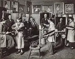 ...a wonderful, wonderful tradition. And although the rats sat on the gas stove and cleaned their whiskers, we had a marvellous time, and we used to get here at 10:00 in the morning and leave at 10:00 at night. I had a few months under Bernard Hall who was a head of the art school then, and [he] put steel into my soul, because I'd worked for a long time on the antique sandled foot, the plaster cast of it. and I thought this wasn't too bad. He came down and in one sweep of his hand, wiped the whole thing out and said, "Why don't you observe it!" This was shattering. I burst into tears and...from that moment on, I developed a donkey-like stubbornness and persisted with my painting.[2]