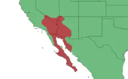 The range of Phyllorhynchus decurtatus extends throughout the southwestern United States in the states of California, Nevada, and Arizona,[8] with a single specimen having been spotted in southern Utah.[9] In Mexico it can be found along the coastline of the Gulf of California. Its range overlaps with much of the Sonoran and Mojave deserts.[8]
