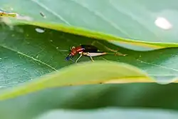 The group is characterized by the long maxillary palpi, flattened and widened in the last segment,[1] as well as the tarsal adhesive pads, used to walk on the underside of leaves.[2] Despite their size (less than 10 mm), the notorious colors make them easily recognizable.[3]