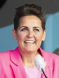 Pia Olsen Dyhr (born 30 November 1971) is a Danish politician and leader of The Green Left. She has been a member of the Folketing the 2007 general elections. Dyhr has served as Minister for Trade and Investment and later Minister of Transport in the first Helle Thorning-Schmidt Cabinet. Following her party's resignation from the cabinet, Dyhr was elected as chairman of the party.[1][2][3]
