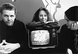 ![]() Pia Tikka (center) with Petri Rossi and Saara Cantell during her studies at the University of Art and Design in Helsinki. | |