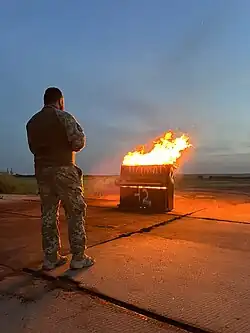 Piano burning ceremonies based on the RAF tradition are held by the US Air Force. A piano was ceremonially burnt at Langley Air Force Base in 2011 to celebrate the 94th anniversary of the 94th Fighter Squadron.[1] At Seymour Johnson Air Force Base, the 4th Fighter Wing burns a piano each year in commemoration of the Battle of Britain. Vance Air Force Base sometimes celebrates the graduation of trainee pilots with a piano burning.[4][3]