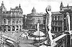 We can consider the square being built between 1899 and 1983.[2] The four eclectic palaces are contrasted by neoclassic examples of buildings such as the Teatro Carlo Felice and Accademia Ligustica di Belle Arti. Furthermore, next to Teatro Carlo Felice two streets branch out: Via Roma (elegant street enriched by boutiques and shops), flanked by Galleria Mazzini and Via XXV Aprile.