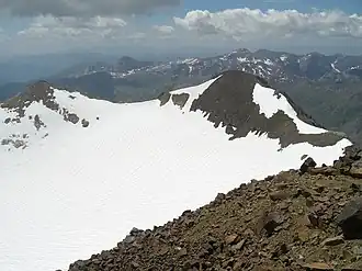 ![]() Vue du pic Central (à gauche) et du pic de Cerbillona (à droite). | |