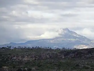 The Pico do Itambé State Park is divided between the municipalities of Santo Antônio do Itambé, Serro and Serra Azul de Minas in Minas Gerais. It has an area of 4,696 hectares (11,600 acres).[1][a] It is 357 kilometres (222 mi) from Belo Horizonte. The word "Itambé" is of indigenous origin and means "sharp stone".[3] The park protects the Serra do Espinhaço, a mountain range.[4] The highest peak is the 2,002 metres (6,568 ft) Pico do Itambé, a major landmark of the state. It contains various springs and headwaters of the Jequitinhonha and Doce rivers.[1]