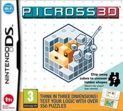 Picross 3D, known in Japan as Rittai Picross (立体ピクロス, Rittai Pikurosu; lit. "Solid Geometry Picross"), is a puzzle video game developed by HAL Laboratory and published by Nintendo for the Nintendo DS. It was released in Japan in March 2009, in Europe in March 2010, and in North America in May 2010. It uses similar nonogram mechanics to Picross DS, but adapted to a three-dimensional environment by adding an extra axis blocks can go on. Outside Japan, the game is part of Nintendo's Touch! Generations brand. It was also released for the Wii U's Virtual Console in Europe and Japan in 2016 and North America in 2017. A sequel, Picross 3D: Round 2, was released for the Nintendo 3DS in Japan in October 2015, in North America in September 2016, and in Europe and Australia in December 2016.[1]