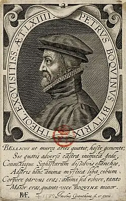 Pierre Boquin was probably born after 1518 in Guyenne in Western France.[1] He earned a doctorate in theology in 1539 at the University of Bourges. He was briefly a member of the Carmelite Order even serving as prior of the Bourges community before leaving in 1541 due to his turn toward Protestantism. He fled through Basel and Leipzig to Wittenberg. He joined the faculty of the Strasbourg Academy in 1542 as the successor of John Calvin.