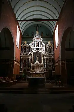 The high altar of Domalain was built in 1637 by Corbineau.[16] The altarpiece has the same structure as that of the église de la Trinité de Laval.