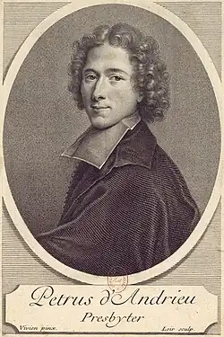 ![]() Portrait of Pierre Dandrieu after Joseph Vivien. Engraving by Loir | |