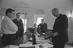 Salinger was retained by President Lyndon B. Johnson as press secretary. Johnson said, "I don't have to tell you that Mr. Salinger was John F. Kennedy's press secretary ... and I don't know what I would have done without him, night and day, over this past month."[1]: 161 At one point in his career, Salinger briefly considered running for president, as he described in an interview about his Memoir in 1995.[4]
