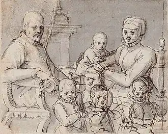 Pieter was the son of Helena Backer (also known as Heyltje Roelofs) and Isaac Pietersz, a merchant from Haarlem who first supplied the Danish court and was then appointed commissioner for the States General of the Netherlands at the Sound toll. He was stationed in Helsingør and assisted Dutch and Danish merchants in legal cases.[2] Around 1578/1580 the family came back to Amsterdam; his father remarried in 1581. According to Flemish art historian Karel van Mander, Pieter Isaacsz spent a year and a half learning to paint under the instruction of Cornelis Ketel. Isaacz then traveled to Italy where he became the pupil of Hans von Aachen whom he followed on his travels in Italy and Germany.[3] Pieter and Hans visited Venice and Florence between 1585 and 1587 and Rome in 1590. He then turned back the Netherlands; his companion stayed in Prague in the service of the King of Bohemia.