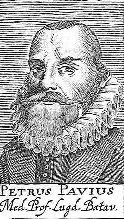 Pieter Pauw (Latin: Petrus Pavius), (2 August 1564 – 1 August 1617) was a Dutch botanist and anatomist. He was a student of Hieronymus Fabricius. He was the first Anatomy Professor at University of Leiden.