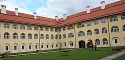 The church of the former Benedictine monastery was based on a design by Carlone using the Jesuit church in Linz as a model.[1] Designed and finished by his sons Carlo Antonio and Giovanni Battista, it was said to have one of the most magnificent interiors of the late Austro-Italian Baroque.