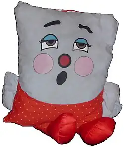 Pillow People are rectangular stuffed toys (pillows) with decal faces and stuffed hands & feet attached to their bodies. The line was started in 1986 by Penny Ekstein-Lieberman and was produced by Springs Industries (and later PSE Marketing).[2][3][4] The toys were popular during the late 1980s and generated $120 million in sales.[1] The line featured an array of different characters such as animals and people. Besides the 'people' of the line, they also manufacture pillow pets—such as cats and dogs. Additional merchandise included bed sheets imprinted with Pillow People characters, figurines and books. There was also a Christmas TV special made as well.[1]