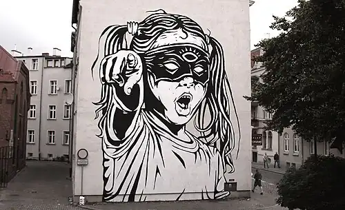 Pilpeled is known for his monochromatic style and his work can be found on murals around the world,[21] galleries, and museums.[22][23]