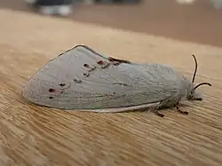 Its wingspan is measured to be about 40 mm for males and about 60 mm for females.[2]