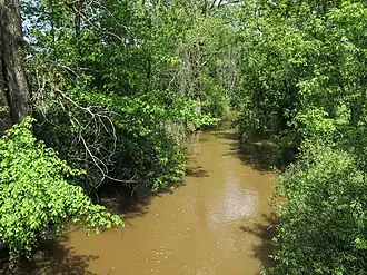 The Pinconning River (Ojibwe Opinikaaning-ziibi (syncope as Pinkaaning-ziibi), "River at potatoing-grounds")[3] is a small river on the central Lower Peninsula of Michigan in the United States. It is 15.6 miles (25.1 km) long[4] and flows to Saginaw Bay of Lake Huron, draining an area of 26.6 square miles (69 km2).[5] Via Lake Huron and the Great Lakes system, it is part of the larger watershed of the St. Lawrence River.