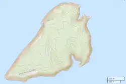 The island is 0.21 square miles in area. It has 10- to 30-ft-high sand bluffs on all sides, though access to the island can be obtained from a sandy beach at the southwestern tip. One named road on the island, Pine Island Road, leads from the access point to the center of the island. The maximum elevation of the island is 165 feet (50.3 metres) above mean sea level.[1]