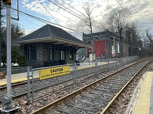 Trolleys arriving at this station travel between 69th Street Transit Center in Upper Darby Township, Pennsylvania and Orange Street in Media, Pennsylvania. The station has a shed with a roof where people can go inside when it is raining. It also has free parking and a power station next to the shed.[1] East of this station, the D1 narrows down from two tracks to one as it enters Smedley County Park and goes back to two tracks east of PA Route 420. Additionally, the station serves as the Smedley Park - Pine Ridge Run / Penza Tract Trailhead.[2][3]