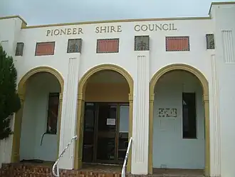 Pioneer Shire Council Building is a heritage-listed town hall at 1 Wood Street, Mackay, Mackay Region, Queensland, Australia. It was designed by Harold Vivian Marsh Brown and built in 1935 by William Patrick Guthrie. It was added to the Queensland Heritage Register on 7 December 2007.[1]