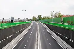 On 21 November 2001, the viaduct over Armii Krajowej Street was put into use, which now serves as a railway traffic route. In the 1980s and 1990s, barriers before the then-operating railway-road crossing in Piotrowice were down for 13–14 hours a day, and the waiting time for cars at the crossing reached 50 minutes or more.[57] On 12 April 2021, with the participation of Prime Minister Mateusz Morawiecki and the Mayor of Katowice Marcin Krupa, a road junction at the intersection of T. Kościuszki and Armii Krajowej streets was opened. The modernization works began in 2018, and as part of this investment, a two-level intersection of streets was created, with the national road 81 passing below.[58]
