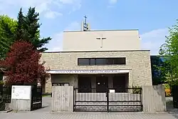 In 1930, the construction of a new temporary wooden church began in Piotrowice.[115] The consecration of the temporary church of the Sacred Heart of Jesus took place on 26 October 1930.[118] The curacy was established on 1 May 1931,[115] and the parish of the Sacred Heart of Jesus was established on 2 November 1936.[119] However, construction of the proper church did not commence due to the outbreak of World War II. In 1956, preparations for the construction of the proper church resumed, but permission for the expansion was not granted.[120] It was not until 1974 that construction of the proper Church of the Sacred Heart of Jesus and St. John Bosco began. It was consecrated by the then Bishop of Katowice, Herbert Bednorz, on 15 December 1977.[121] Earlier, on 9 February 1976, the Piotrowice parish gained an additional patron – St. John Bosco.[115] The parish cemetery of the Sacred Heart of Jesus, covering an area of 2.135 hectares, is located on Armii Krajowej Street.[122]