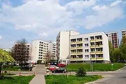 In the early 1980s, on the border between Piotrowice and Kostuchna, in the area of Tyska, S. Łętowski, A. Kostka-Napierski, and M. Radocki streets, construction began on the Odrodzenia housing estate, designed by a team of architects from Wrocław in cooperation with the Katowice Inwestprojekt.[49] Construction work on the estate began in 1979. It was part of an architectural-urban design from the late 1970s, envisioning the construction of a large complex of residential estates for 120,000 people.[55]