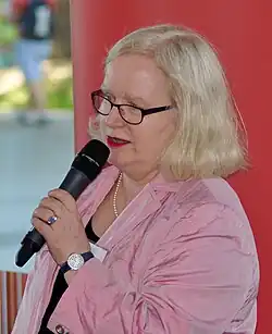 ![]() Professor Pip Pattison speaking at the University of Sydney in 2014 | |