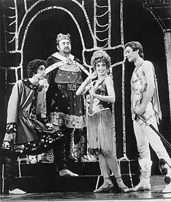 The 1972 Broadway musical hit Pippin, by Stephen Schwartz and Roger O. Hirson, is loosely based on the Pippin the Hunchback of history. In that work, Pippin, who is not a hunchback, has graduated from university and is trying to decide what his life should be about. He eventually decides to go off to war in his father's army but quickly changes his mind. By the end of the first act, having found no meaning in women and sex, Pippin decides to revolt. In a glaring breach with history, the revolt succeeds, Charles is assassinated, and Pippin finds himself king. However, again, he finds no meaning in this calling and so, through magic and song, he resurrects Charles. He toys with suicide, but ultimately chooses the love of a woman over killing himself. The musical was well-received; its original New York production ran for almost five years and won multiple Tony awards: Best Direction of a Musical (Bob Fosse), Best Choreography (Bob Fosse), Best Leading Actor in a Musical (Ben Vereen), among others. In 2013, it returned to Broadway in a major well-acclaimed revival, which also won many Tonys, including Best Revival of a Musical, Best Direction of a Musical (Diane Paulus), Best Performance by a Leading Actress (Patina Miller, playing the role previously played by Tony Award winner Ben Vereen) and Best Performance by a Featured Actress (Andrea Martin).[18]