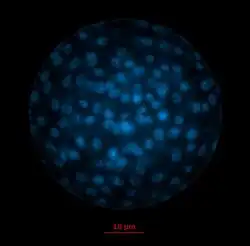 | Pirum gemmata (Ichthyosporea), nuclei stained in blue with DAPI | |